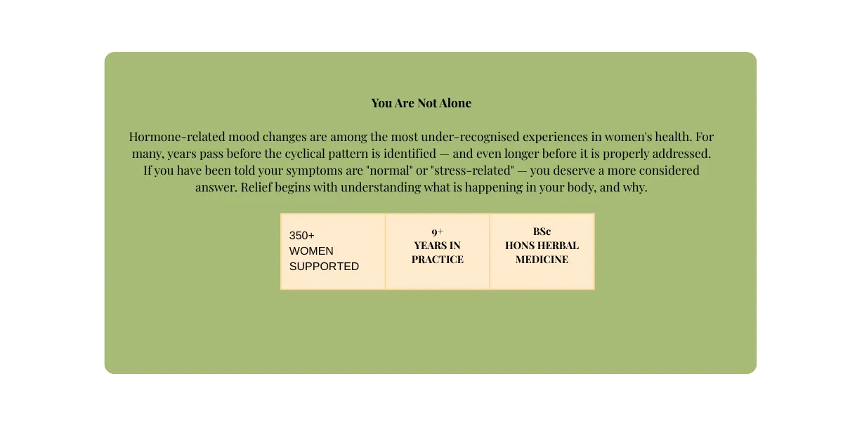 I am a Medical Herbalist with a Bsc Hons in Western Herbal Medicine I am and also a qualified Mental Health First Aider because hormone health and emotional wellbeing are often deeply connected.